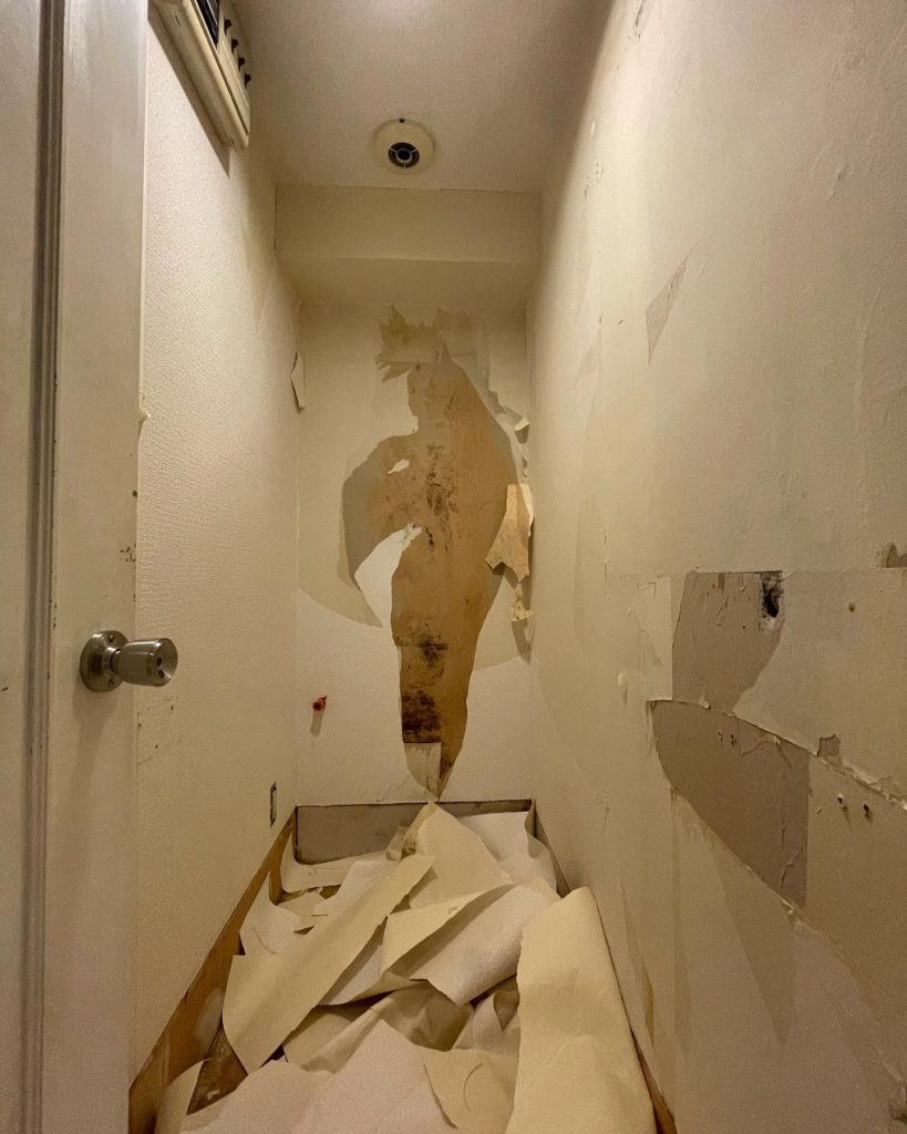 壁紙めくり→カビ処理→シーラ処理→パテ処理3回→床めくり→壁紙貼り→床貼り→巾木貼り🔥🔥🔥