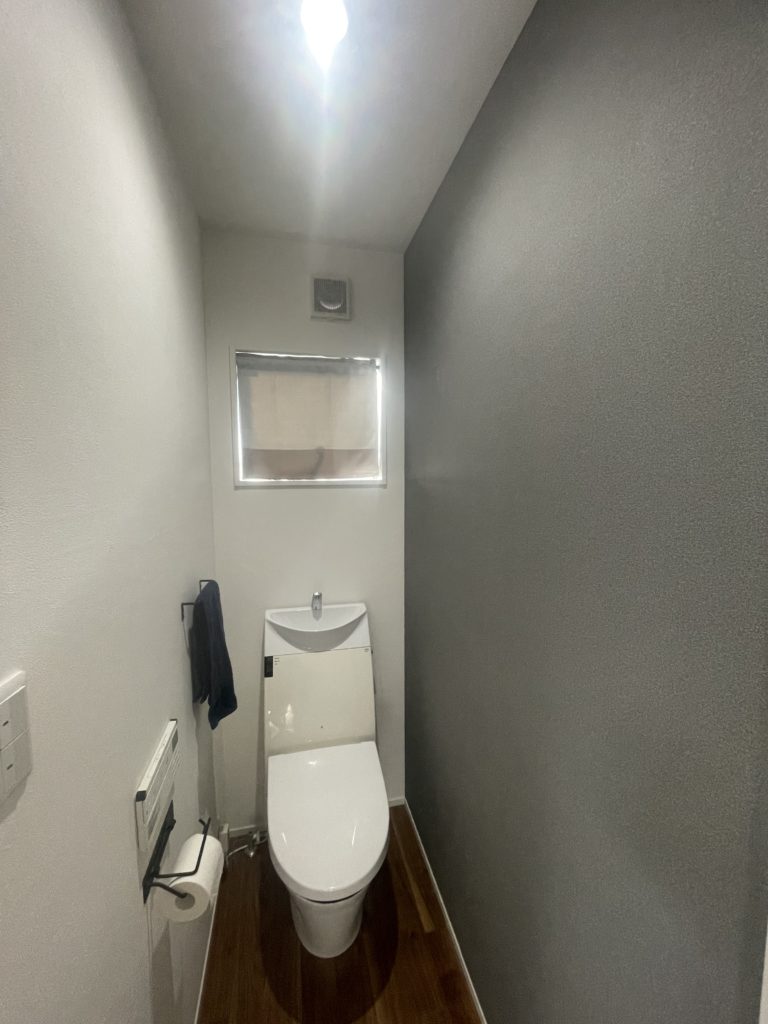 【施工事例】サンゲツ SP9798|黒のアクセントクロスで引き締まったトイレ空間|兵庫県川西市 T様邸