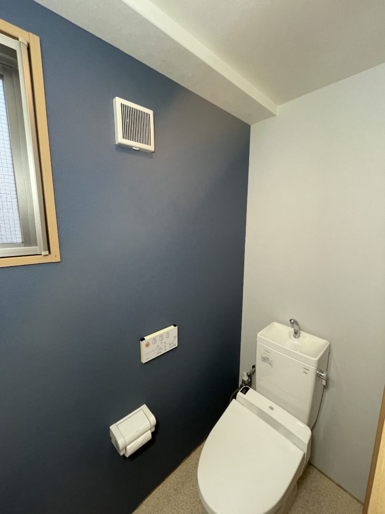 ネイビーのアクセントクロスで、トイレが上質な空間に|兵庫県伊丹市U様邸