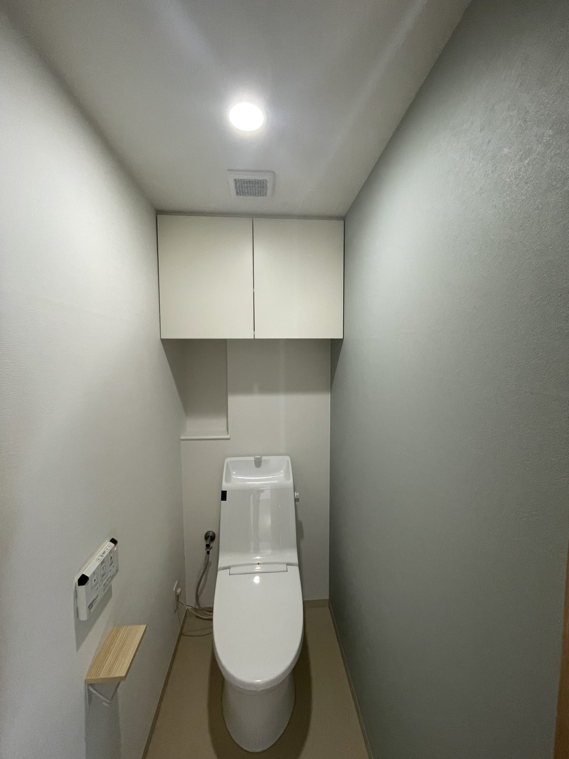 やさしいグレーで、清潔感と落ち着きのあるトイレ空間に|兵庫県宝塚市O様邸
