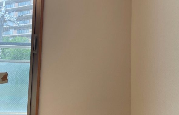 大阪府豊中市のU様邸にて、玄関の壁紙張り替え工事を行いました。今回採用いただいたのは サンゲツの壁紙「RE53823」。優しいピンクカラーが特徴で、玄関を明るく華やかに演出してくれる人気のアクセントクロスです。