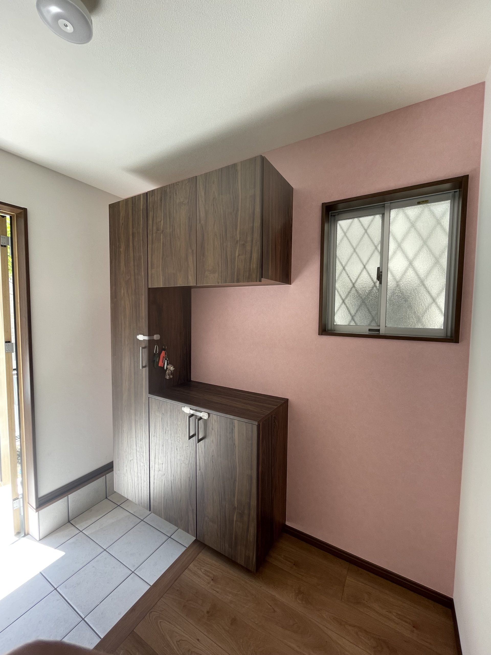 4. 【施工事例】大阪府豊中市U様邸|玄関にピンクのアクセントクロス「サンゲツ RE53823」を施工しました