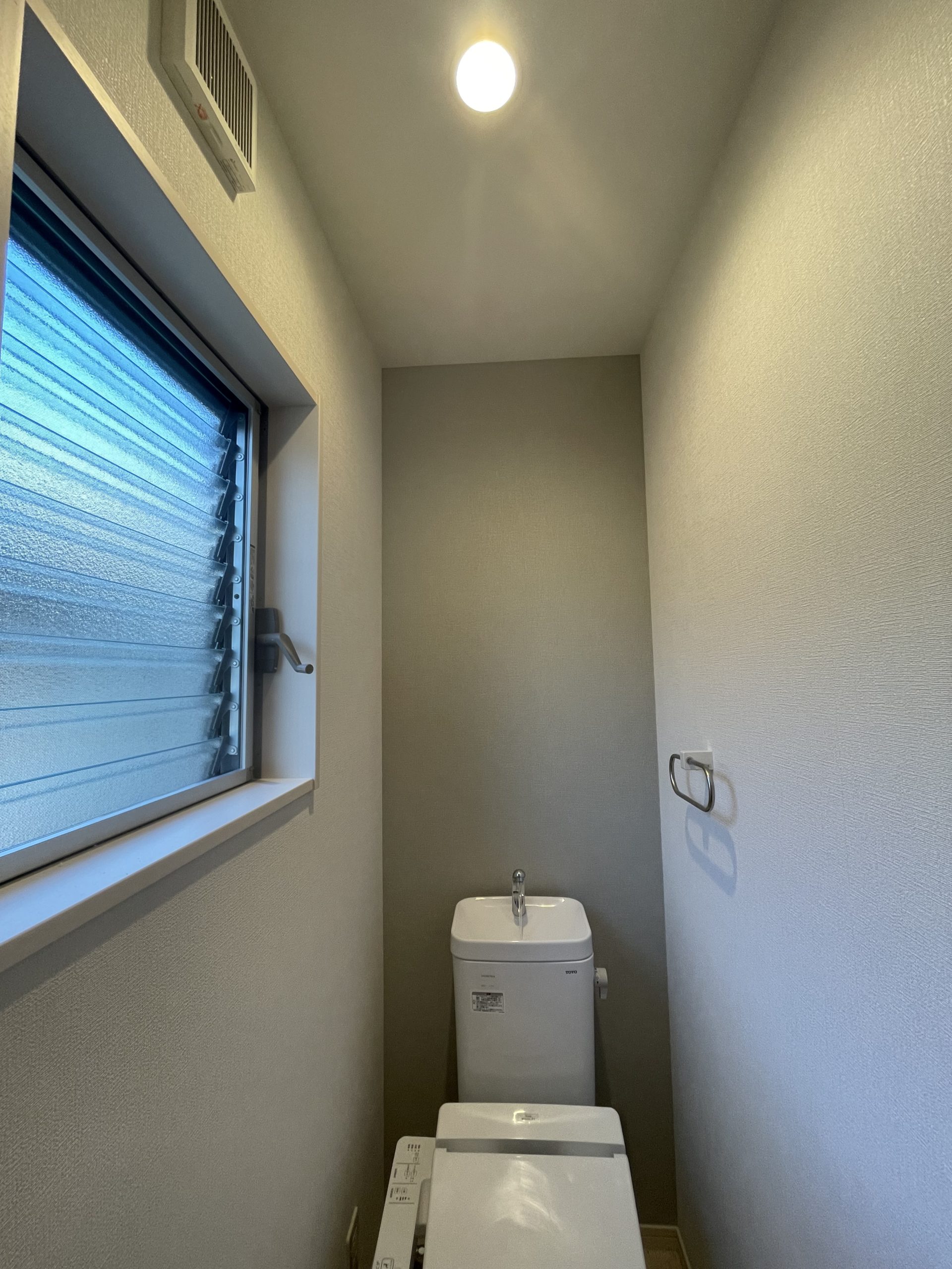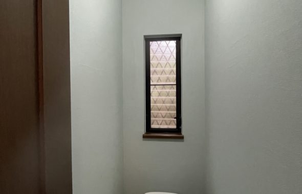 白の便器やサッシとのコントラストも自然で、シンプルながら上品な印象を演出しています。