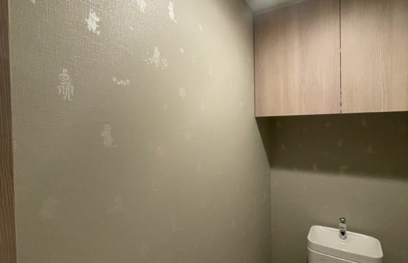 宝塚市O様邸のトイレにて、サンゲツ SP2835(グレー系クロス)を使用し、